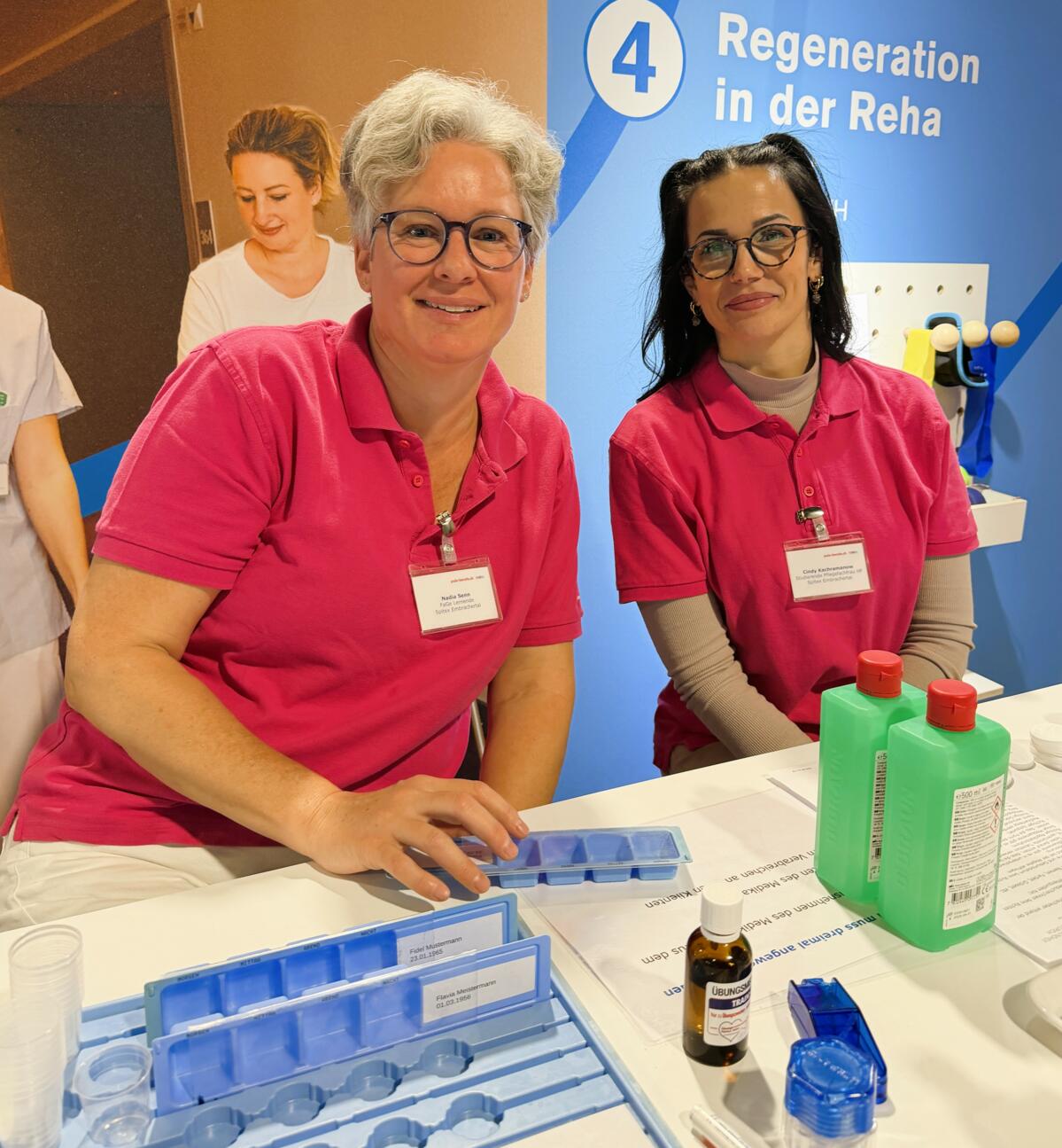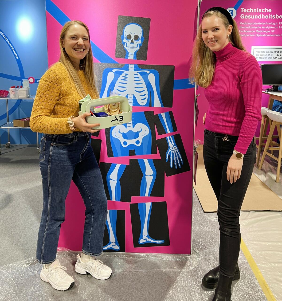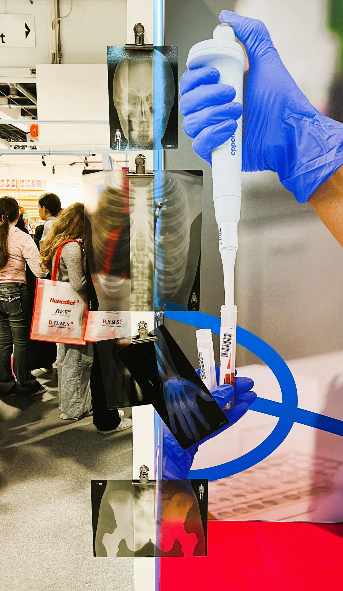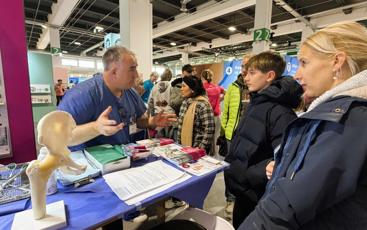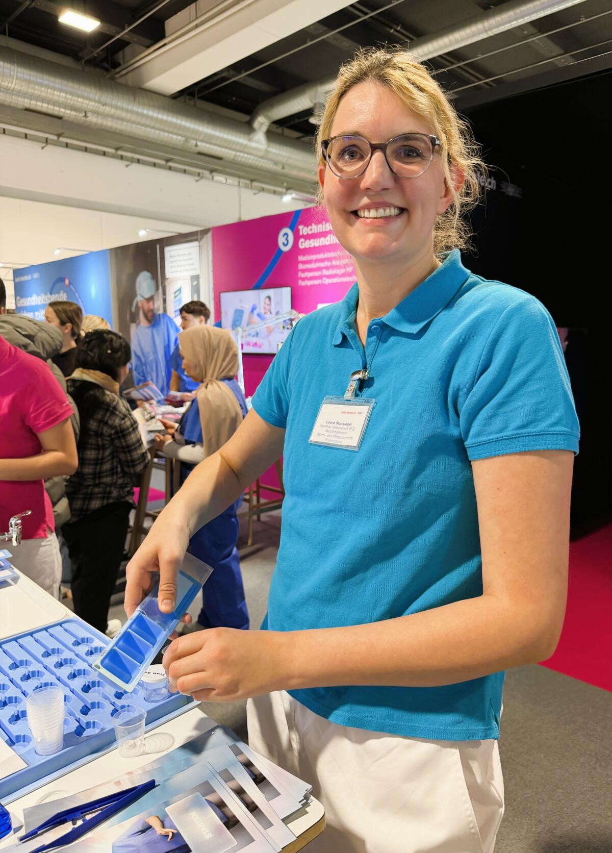 „Welche Diagnose hat Frau Gubser?“ Diese Frage begleitete die Besucherinnen und Besucher durch den Stand. Jugendliche und Erwachsene erhielten an unterschiedlichen Posten hautnahe Einblicke in die Gesundheitsberufe, etwa beim „Umgang mit psychischen Erkrankungen“ oder beim „Getränke eindicken“. Auch die technischen Berufe wie Medizinproduktetechnologe/-technologin EFZ, Fachmann/Fachfrau für med.-technische Radiologie HF, Fachmann/Fachfrau Operationstechnik HF und Biomedizinische Analytikerin/Analytiker wurden vorgestellt. Dort konnten die Gäste unter anderem ein Hüftgelenkknochen betrachten oder erfahren, mit welchen Instrumenten bei Operationen gearbeitet wird.