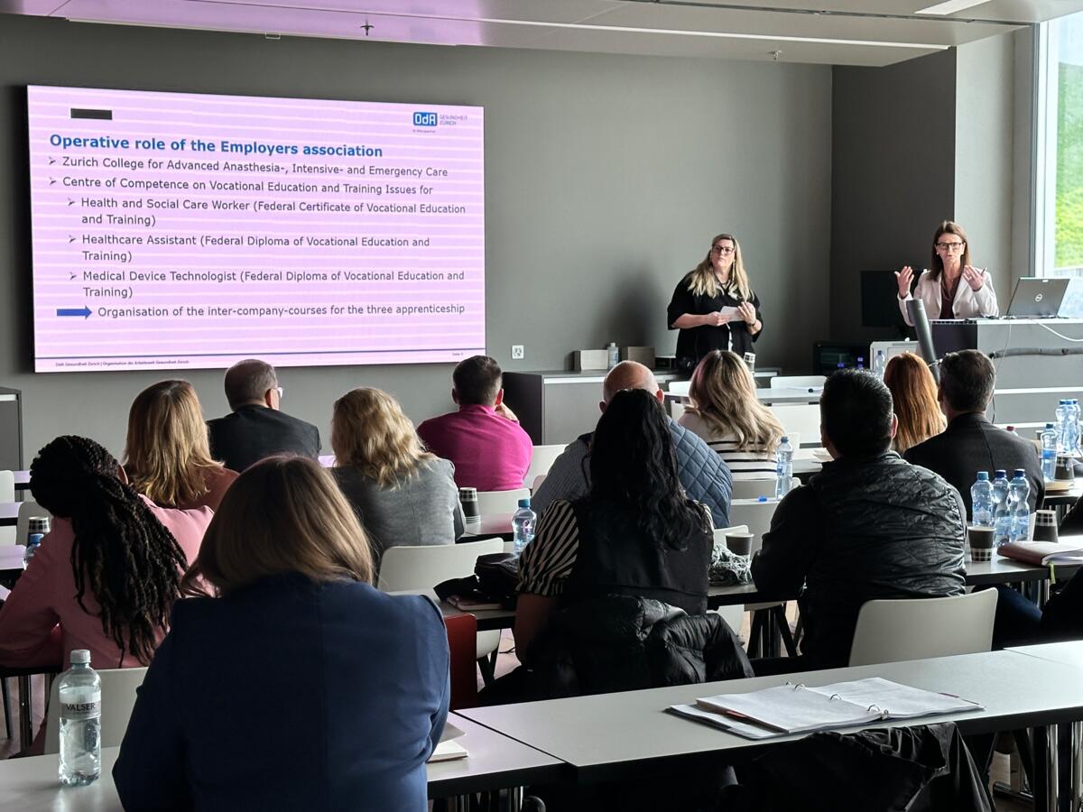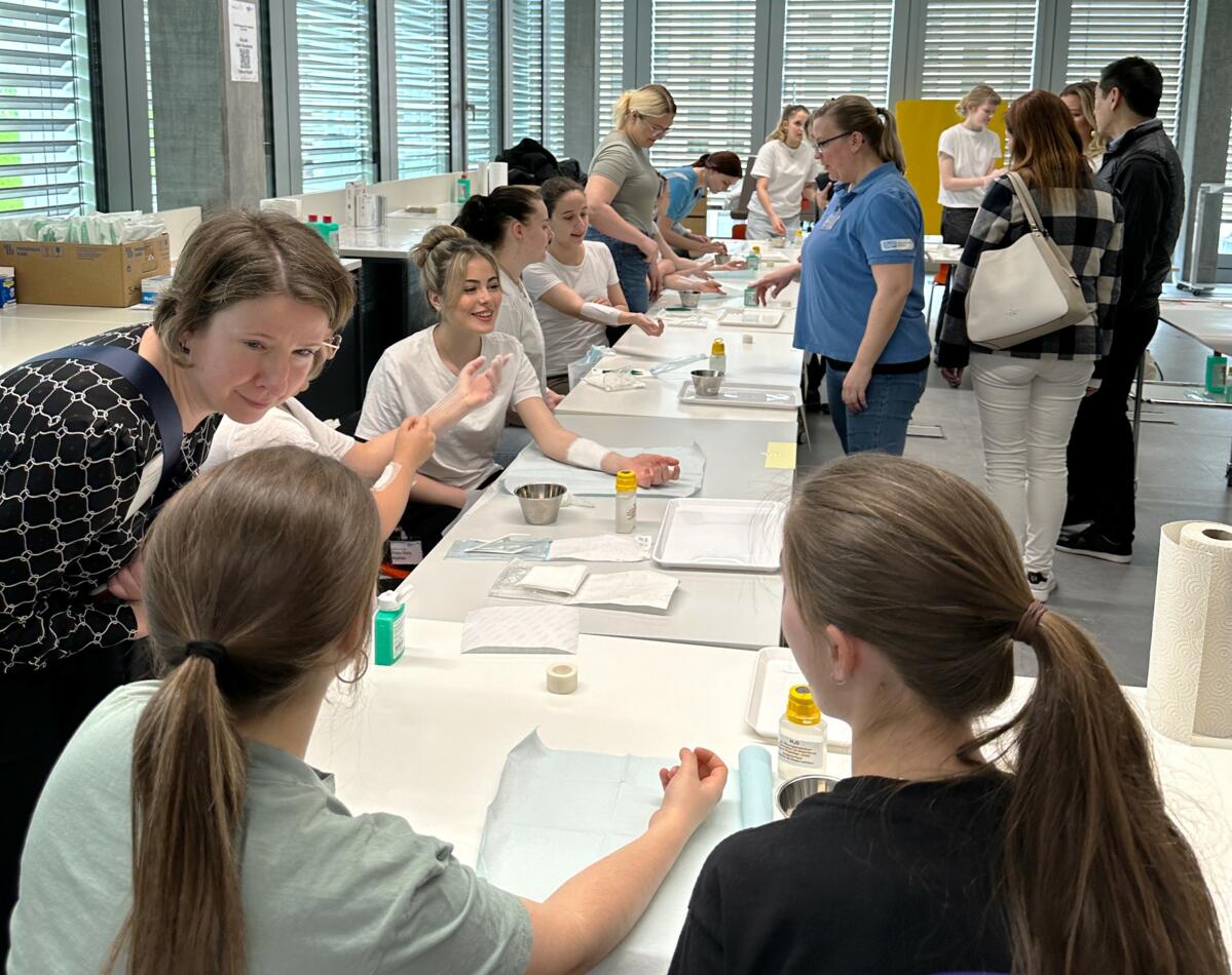 Es war eine besondere Freude, eine Delegation aus verschiedenen Unternehmen und Bildungseinrichtungen aus dem US-Bundesstaat Indiana begrüssen zu dürfen. Das Hauptziel bestand darin, einen Einblick in den Branchenverband der Berufsbildung im Gesundheitswesen zu ermöglichen, sowie die Ausbildungs- und Weiterbildungsmöglichkeiten des Kantons Zürich aufzuzeigen. Im Anschluss hatten sie die Möglichkeit, am Unterricht eines der überbetrieblichen Kurse teilzunehmen und direkte Kontakte zu den Dozenten und Lernenden zu knüpfen.