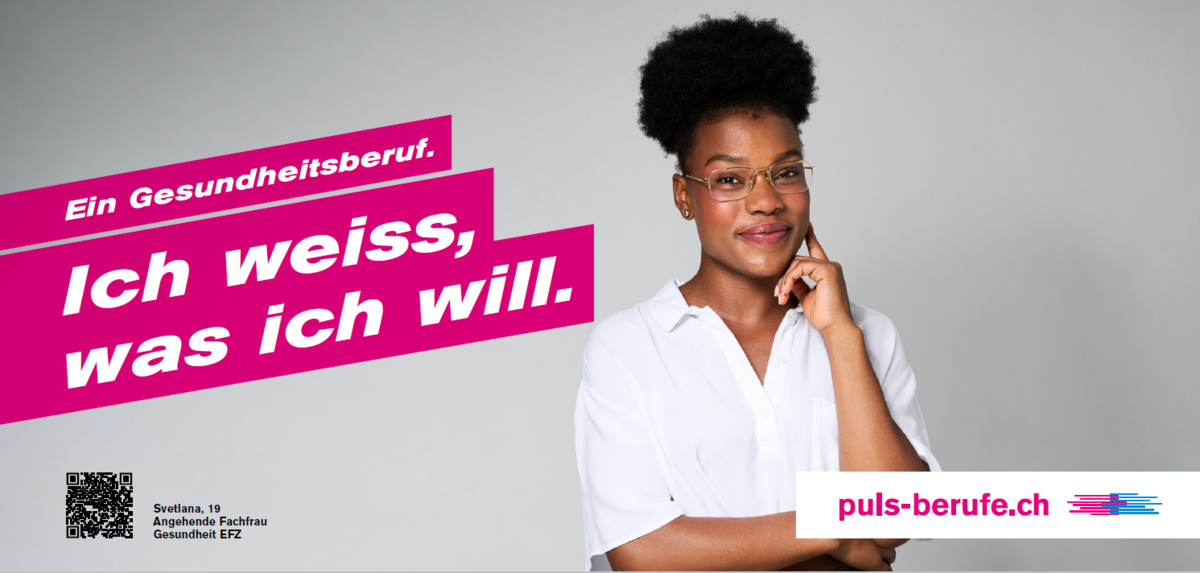 Mit dem Claim «Ich weiss, was ich will – ein Gesundheitsberuf» startet unter der Marke Puls Berufe eine neue Kampagne. Ziel ist es, das Image des Pflegeberufs zu stärken und die Attraktivität für Berufseinsteigende zu erhöhen. Wichtige Facetten des Gesundheitsberufes sollen aufgewertet und verschiedene Karriere- und Entwicklungsmöglichkeiten in der Pflege aufzeigt werden. Im kollektiven Gedächtnis geistern immer noch Vorurteile herum, z.B. dass der Pflegeberuf nichts für Männer sei oder dass es kaum Karrieremöglichkeiten gibt. Heute ist der Beruf jedoch anspruchsvoller und auch vielfältiger. Es gibt verschiedene Pflegeberufe mit Spezialisierungen und Vertiefungen, die ein eigenes Fach- und Einsatzgebiet haben. Jeder Gesundheitsberuf ist ein Teil in der Versorgungskette, die dazu beiträgt, Menschen in gesundheitlichen Belangen zu unterstützen.