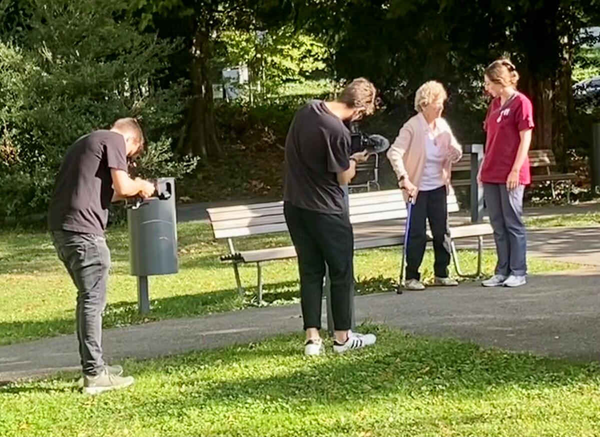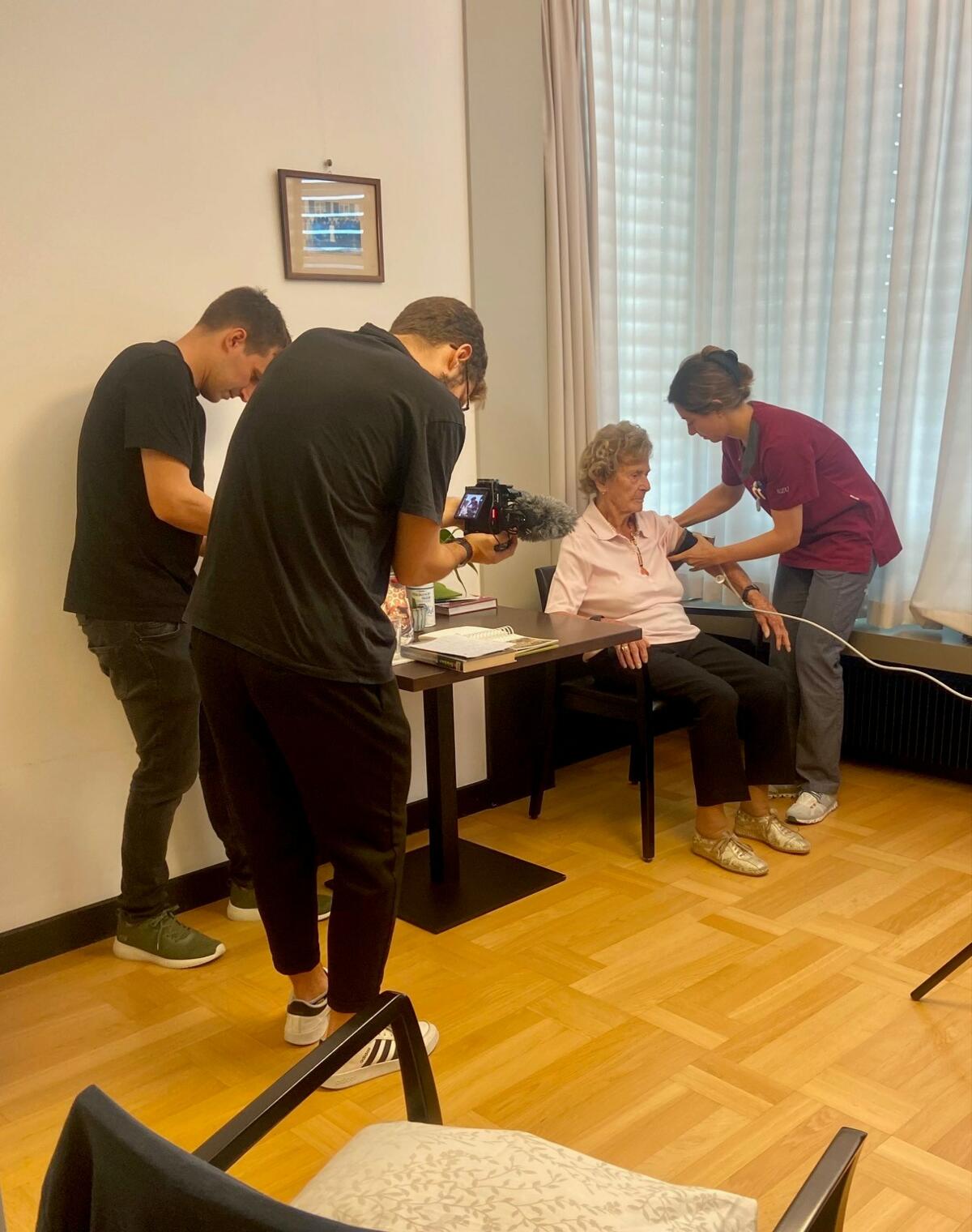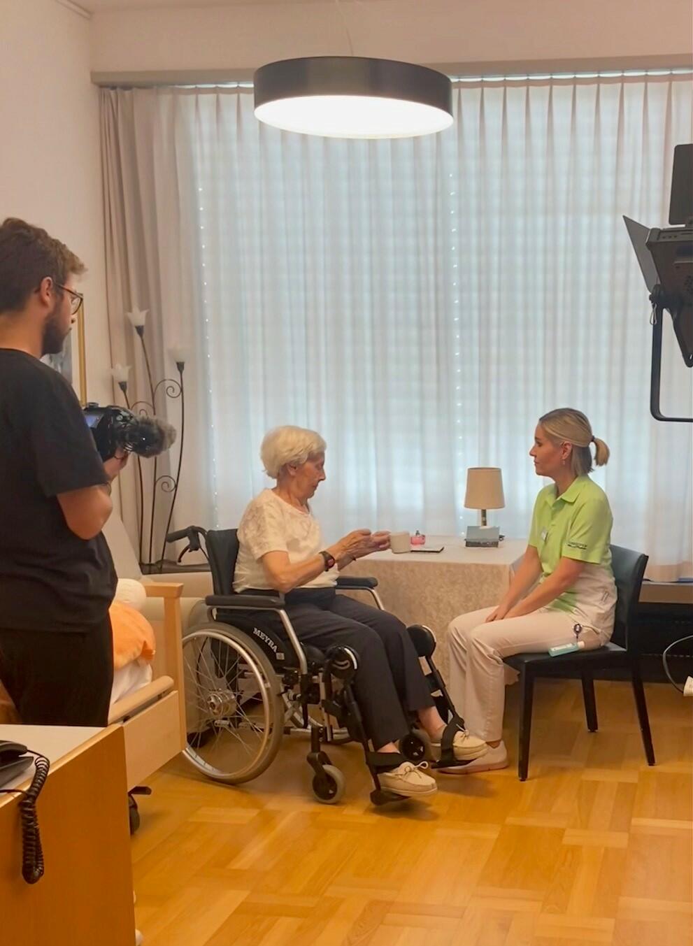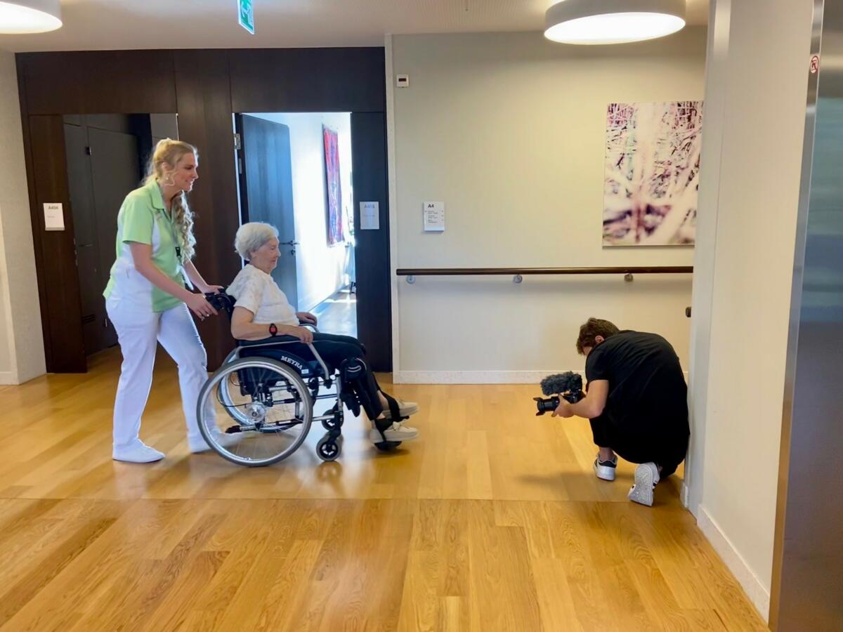 Der Dreh unter dem Motto "Langzeitpflege - meh als mer dänkt." fand am 4. Oktober 2023 im Gesundheitszentrum für das Alter Bombach statt. Neben den Räumlichkeiten konnten wir auch zwei bezaubernde Statistinnen gewinnen. Sechs faszinierende und motivierte Pflegeprofis aus der Langzeitpflege reisten nach Höngg, um der Langzeitpflege ein Gesicht zu geben.