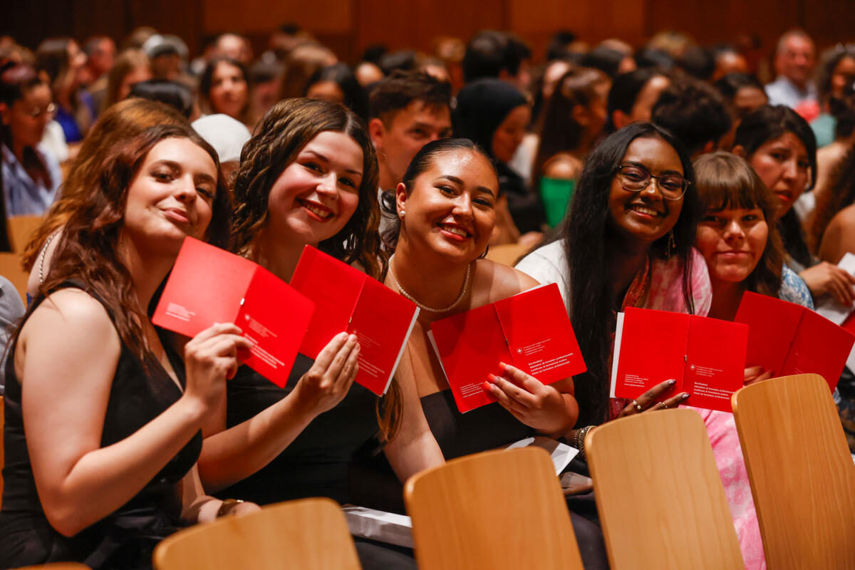 Die Moderatorin Maxine Baumann führte durch den abwechslungsreichen Abend. Begrüsst wurden die Gäste von Heike Pollerhoff, Präsidentin der OdA Sozialberufe Zürich, und Andrea Ritz, Präsidentin der OdA Gesundheit Zürich. Beide bedankten sich in ihren Reden bei den Absolvent:innen für ihr hohes Engagement und betonten die Bedeutung ihrer Arbeit und ihres Berufs.
