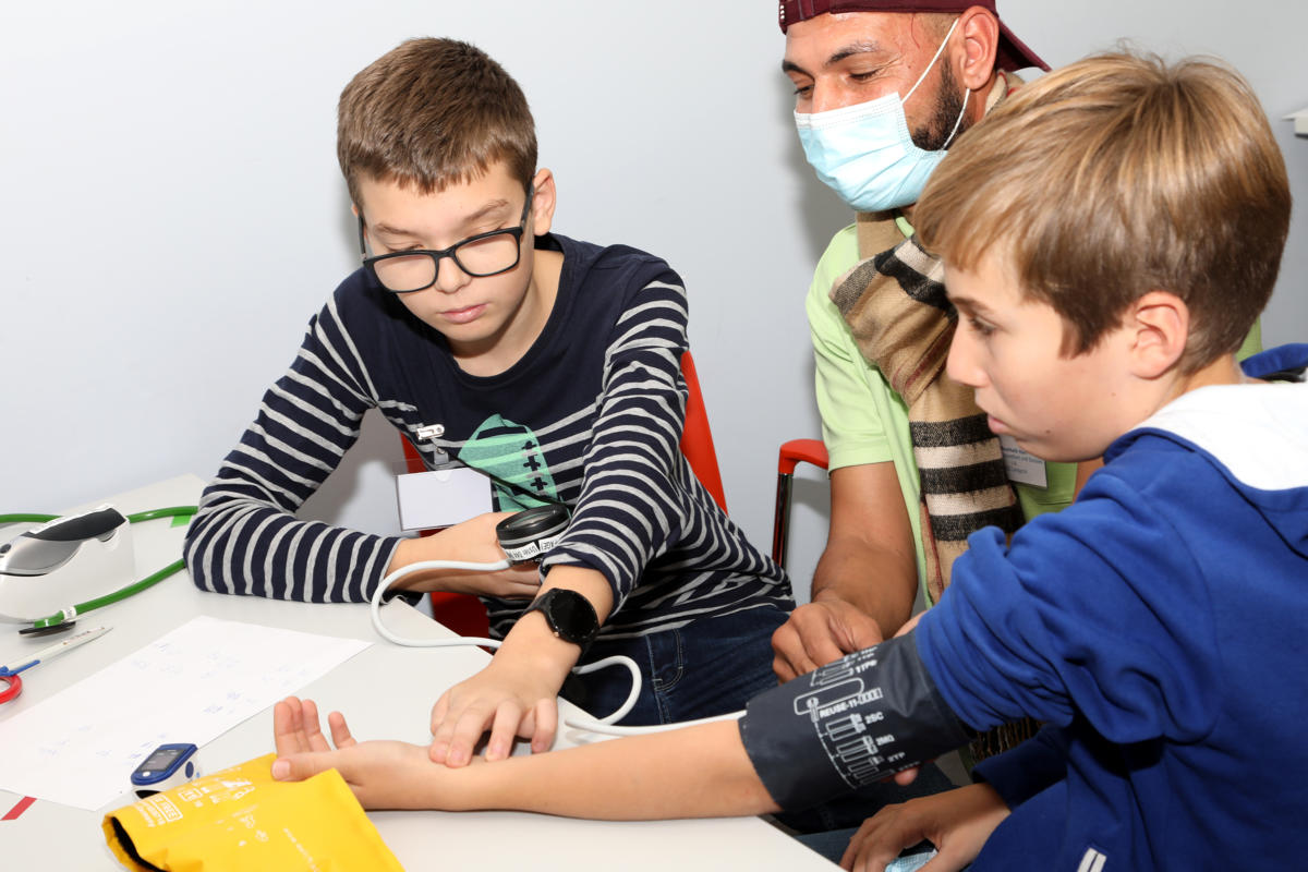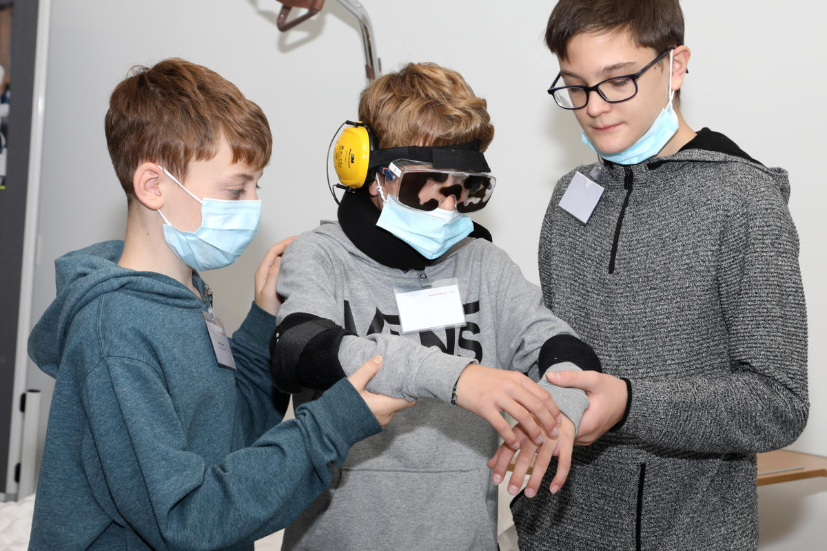 Mit einem Postenlauf, welcher von männlichen Lernenden betreut wurde, konnten die Jungs den Alltag der drei vorgestellten Berufe auf spielerische Art näher kennen lernen und erleben. 5 Posten standen bereit. So zum Beispiel eine Operationsbox packen, Alterseinschränkungen erleben, Blutdruck und Puls messen etc.