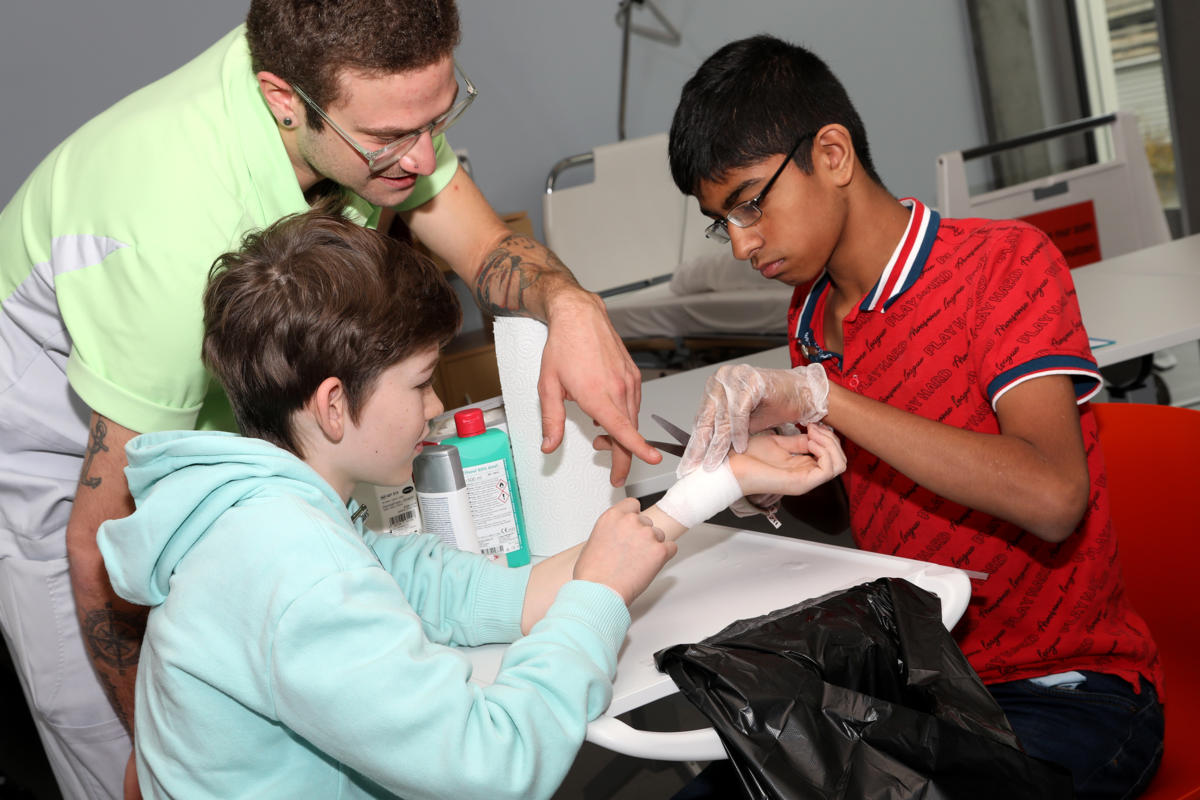 Nach einer kurzen Begrüssung gaben Lernende der Berufe Fachmann Gesundheit (FaGe), Assistent Gesundheit und Soziales (AGS) sowie Medizinproduktetechnologe (MPT) spannende Einblicke in ihren Berufsalltag. Im Anschluss ging es zum interaktiven Teil über.