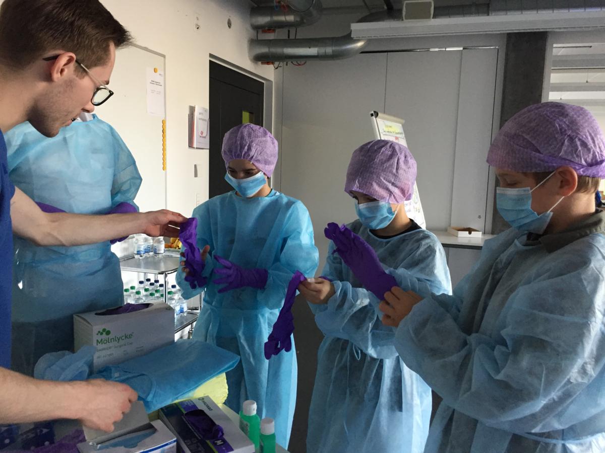 Nach einer Begrüssung durch Heidi Berger, Geschäftsführerin OdA Gesundheit Zürich, wurden die Berufe Fachmann Gesundheit (FaGe), Assistent Gesundheit und Soziales (AGS) sowie Medizinproduktetechnologe (MPT) kurz vorgestellt. Danach ging es zum interaktiven Teil. Mit einem Parcours, welche von männlichen Lernenden betreut wurde, konnten die Jungs den Alltag der drei vorgestellten Berufe auf spielerische Art näher kennen lernen und erleben. Sechs Posten standen bereit. So zum Beispiel eine Operationsbox packen, Essen eingeben, Alterseinschränkungen erleben, Blutdruck, Puls sowie Sauerstoffgehalt messen, etc.