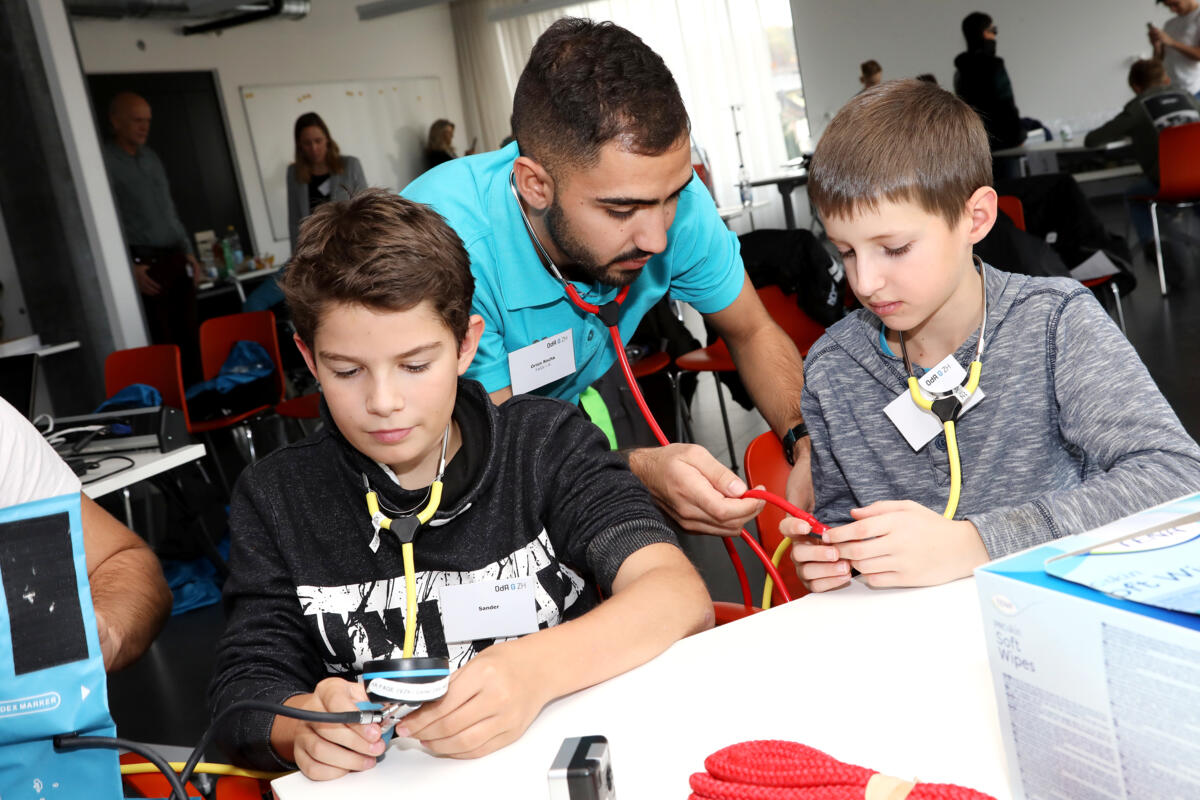 Die Teilnehmenden erleben einen spannenden Tag an der OdA Gesundheit Zürich. Bei einem Parcours können sie die Tätigkeiten eines Medizinproduktetechnologen (MPT), Fachmannes Gesundheit (FaGe) und Assistenten Gesundheit und Soziales (AGS) ausprobieren – so zum Beispiel eine Operationsbox packen, Blutdruck, Puls sowie Sauerstoffgehalt messen, eine Alterssimulation erleben, Patienten und Patientinnen mobilisieren und viele weitere interessante Fertigkeiten. Dabei werden sie von Lernende aus dem 2. und 3. Lehrjahr unterstützt. Ausserdem erzählen sie aus ihrem Arbeitsalltag, sprechen über ihre Erfahrungen und über Weiterbildungsmöglichkeiten.