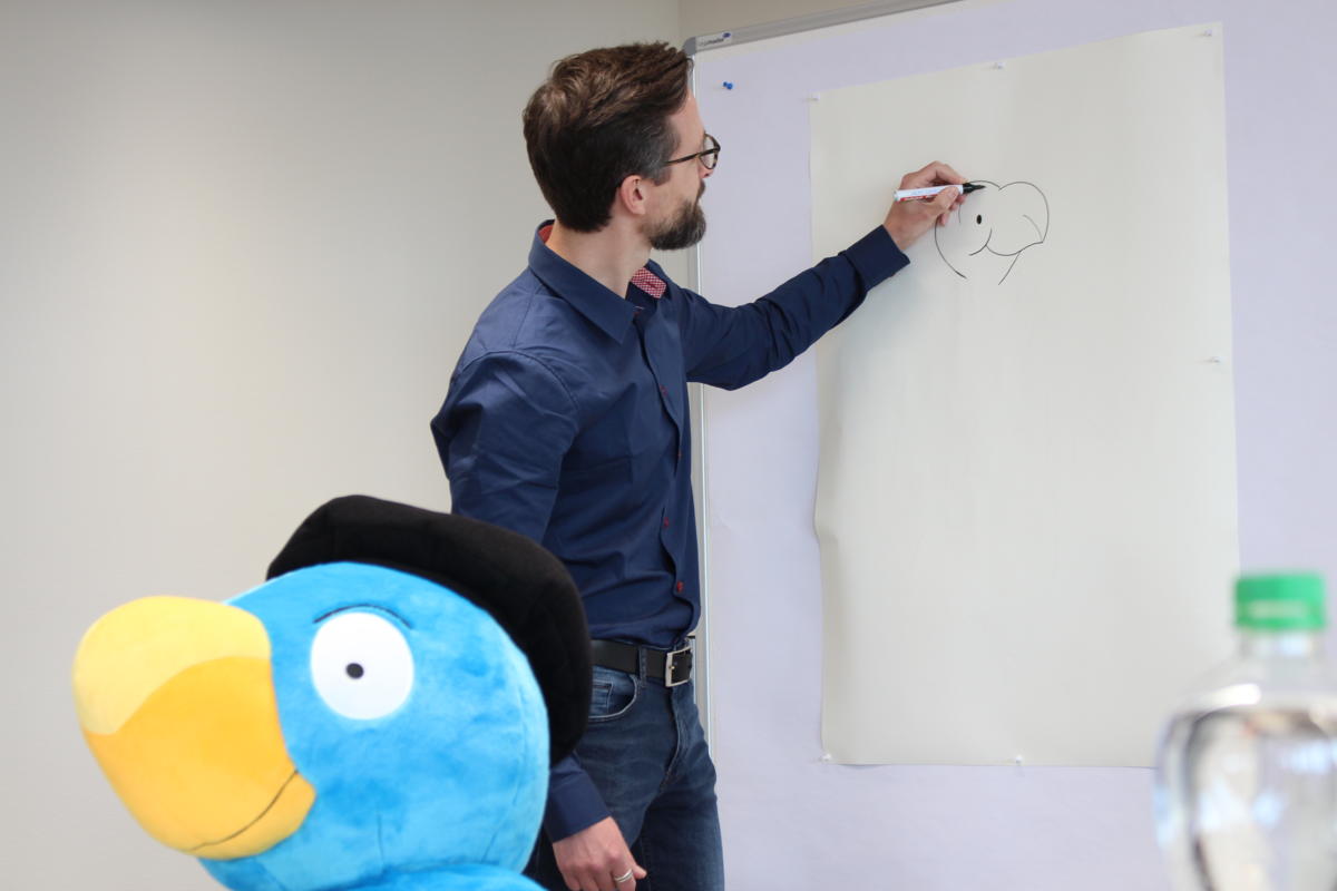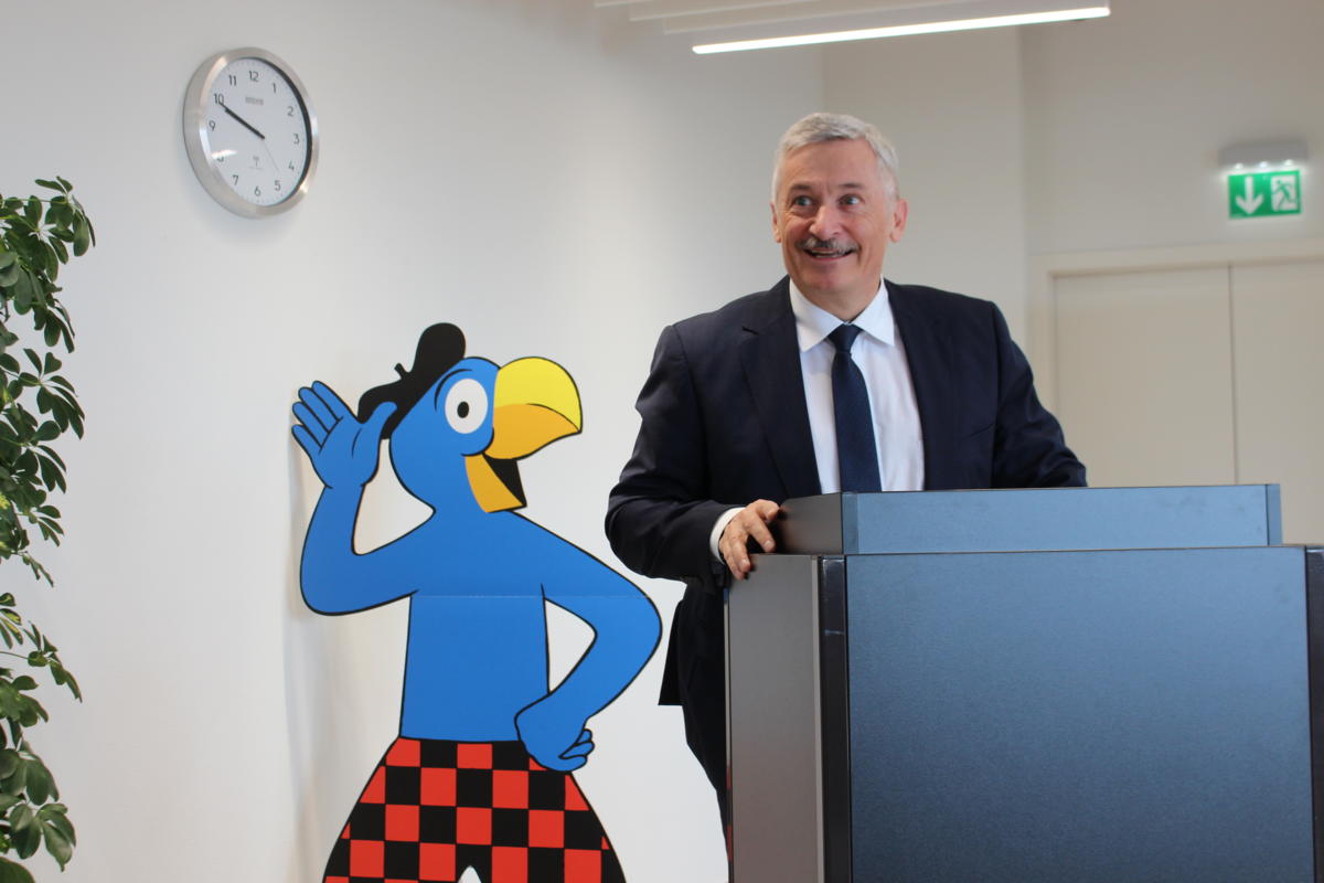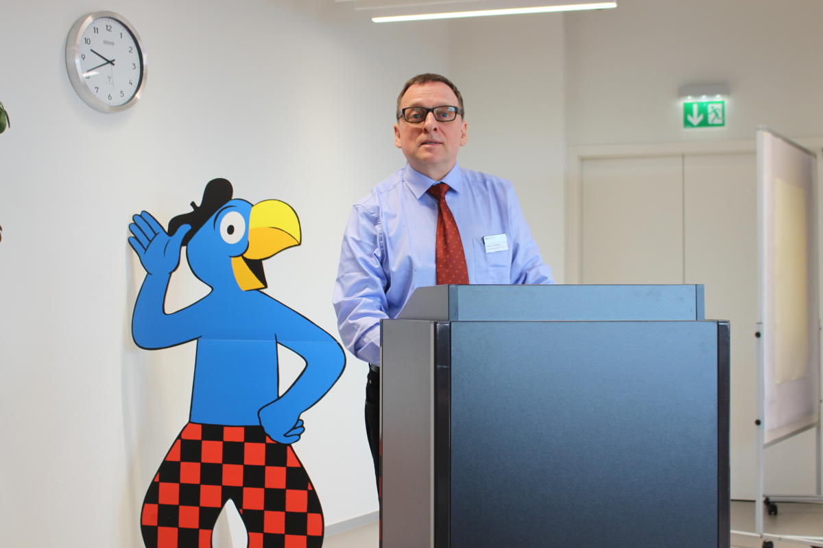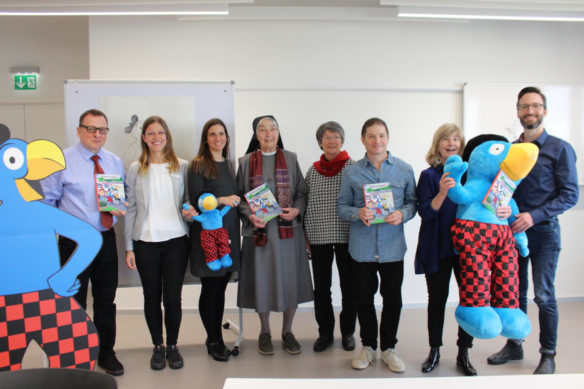 Renate Monego, Direktorin der Pflegezentren der Stadt Zürich, begrüsste die Anwesenden zur Medienorientierung und Buchvernissage im Schulungszentrum Gesundheit SGZ. Markus Malagoli, Mitglied des Vorstands der OdA Gesundheit Zürich und CEO des Universitäts-Kinderspitals Zürich, sprach über die Nachwuchswerbung und Gesundheitsberufe. Peter Lehmann, Ausbildungsverantwortlicher der PZZ, äusserte sich zur Idee und Zusammenarbeit mit der OdA Gesundheit Zürich und dem Globi Verlag. Verlegerin Gisela Klinkenberg stellte den neuen Globi-Band vor. Illustrator Samuel Glättli erklärte seine Arbeit am Buch und zeigte, wie er Globi zeichnet.
