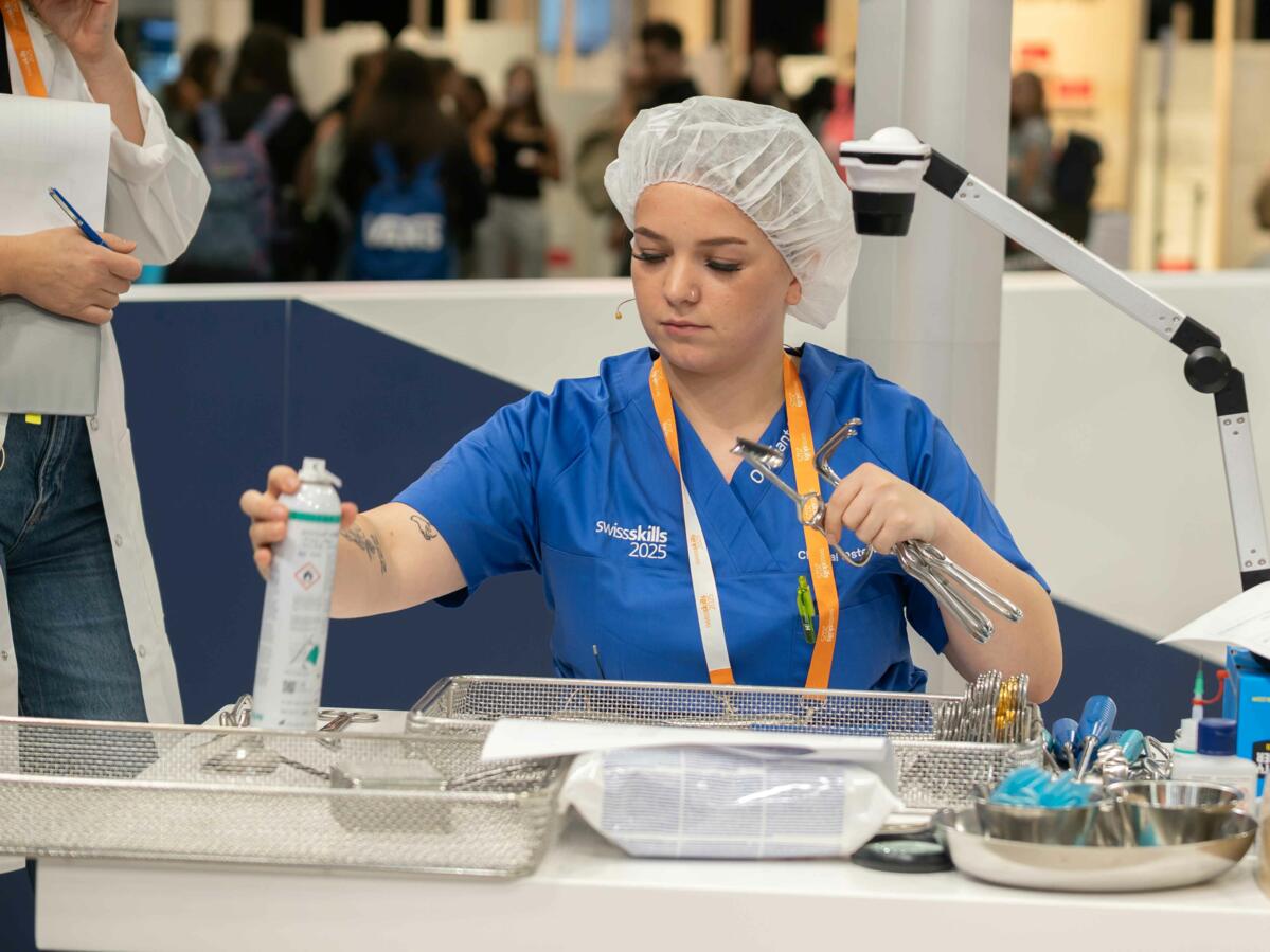 Zusätzlich fand am Stand der OdASanté die Berufsmeisterschaft des jungen Berufs Medizinproduktetechnologin/Medizinproduktetechnologe (MPT) statt. MPT-Fachpersonen arbeiten an der Schnittstelle zwischen Technik und Medizin. Sie stellen sicher, dass chirurgische Instrumente und medizinische Utensilien einwandfrei funktionieren und leisten damit einen entscheidenden Beitrag zur Sicherheit in Spitälern und Operationssälen.