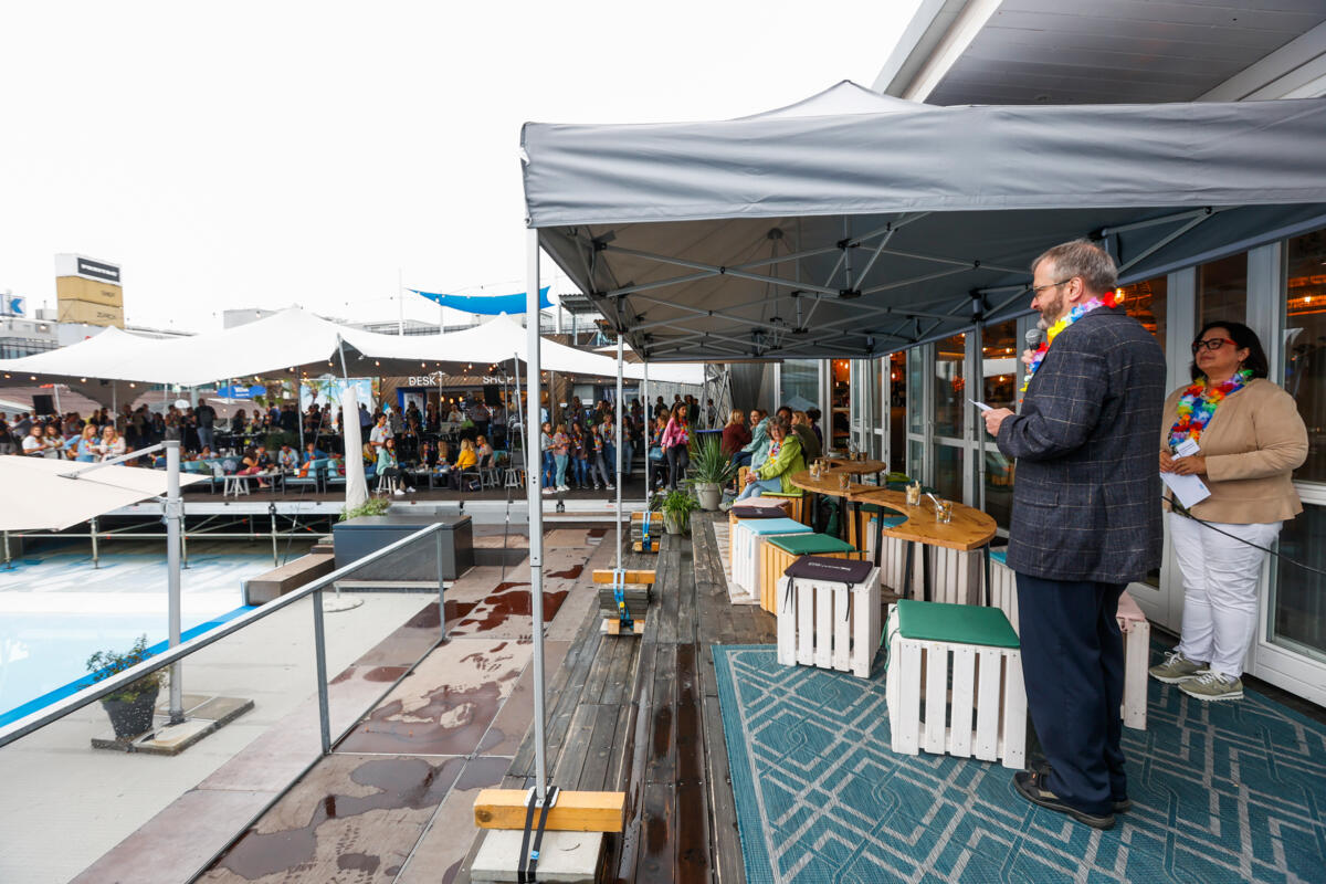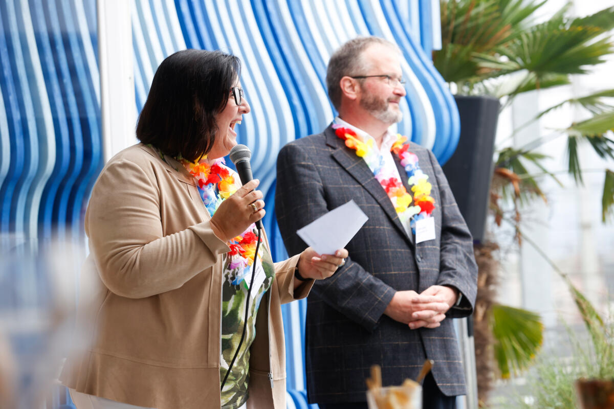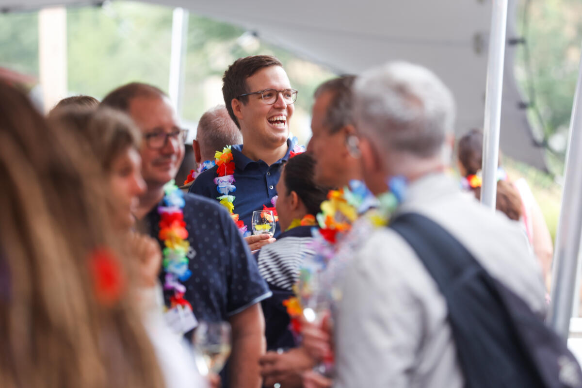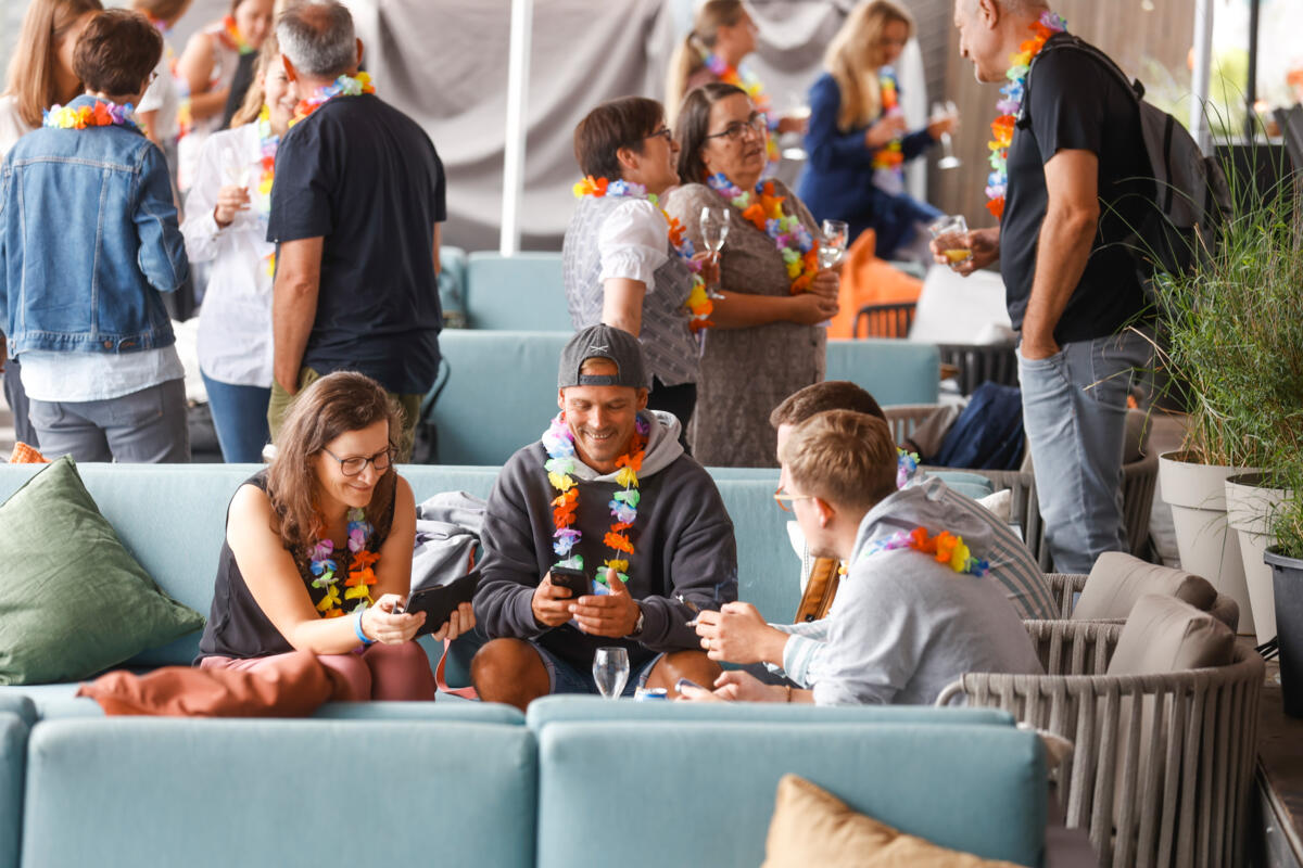 Trotz der anfänglich sehr schlechten Wetterprognose, war uns der Wettergott hold und es blieb trocken. Die sommerlichen Cocktails und die ungezwungene Location trugen das ihre dazu bei, dass die Stimmung ausgelassen und fröhlich war. Die zahlreichen Gäste aus den unterschiedlichsten Bereichen und Funktionen sorgten dafür, dass uns das einmalige Fest noch lange in Erinnerung bleiben wird.