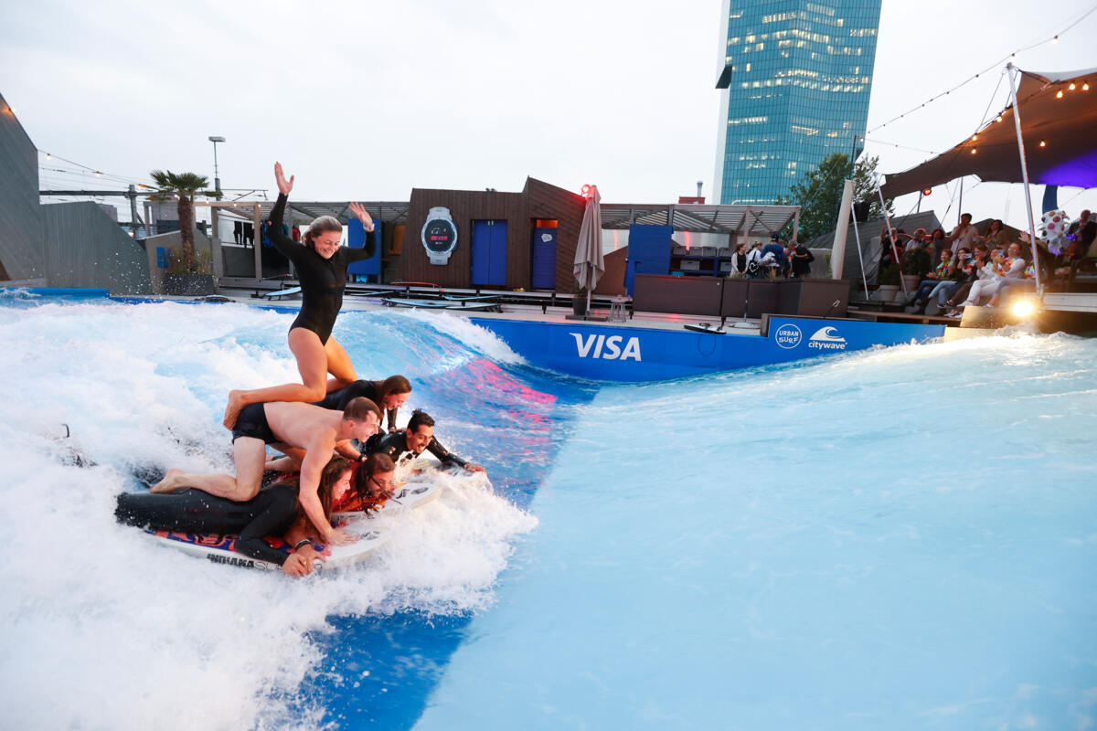 Die Möglichkeit, auf einer künstlichen Welle das Surfen auszuprobieren wurde begeistert genutzt. Fünfzig Surferinnen und Surfer trauten sich auf die Welle. Es brauchte Mut, schliesslich waren sehr viele Zuschauer und Zuschauerinnen anwesend. Doch es war beeindruckend, wie gut sich alle Surferinnen und Surfer geschlagen haben. Und wenn es jemandem etwas schwieriger fiel, wurde die Person vom Publikum kräftig angefeuert. Spass hat es allemal gemacht! Das Highlight war aber dann die professionelle Surfshow, bei der die Profis ihr Können zeigten.